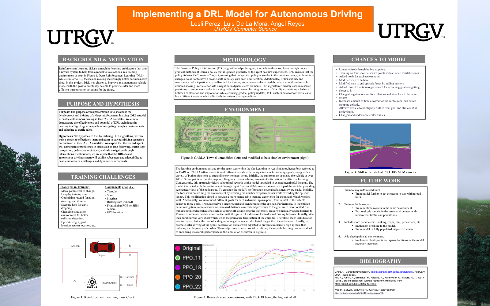- Technologies Python, CARLA Autonomous Driving Simulator, Proximal Policy Optimization (PPO), Deep Reinforcement Learning (DRL), OpenAI Gym–style environments, Computer vision (semantic segmentation input)