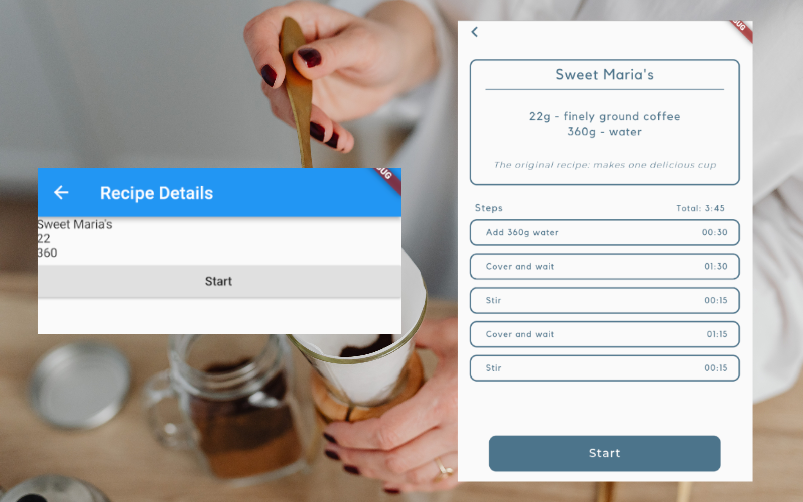 Beyond visual improvements, I added key functionalty to improve user experience. This included a back button on the Recipe Detail screen to return to the Recipe Selection screen and adjustments to the Start button to prevent layout issues on recipes with many steps. Additionally, I expanded the app's coffee recipe data, validated inputs to prevent invalid recipes, and removed placeholder recipes. To ensure reliability, I implemented integration tests, including tests for navigation between screens and validation of recipe data. These tests verified that the app behaves correctly when users interact with it, providing confidence in both functionality and user experience.