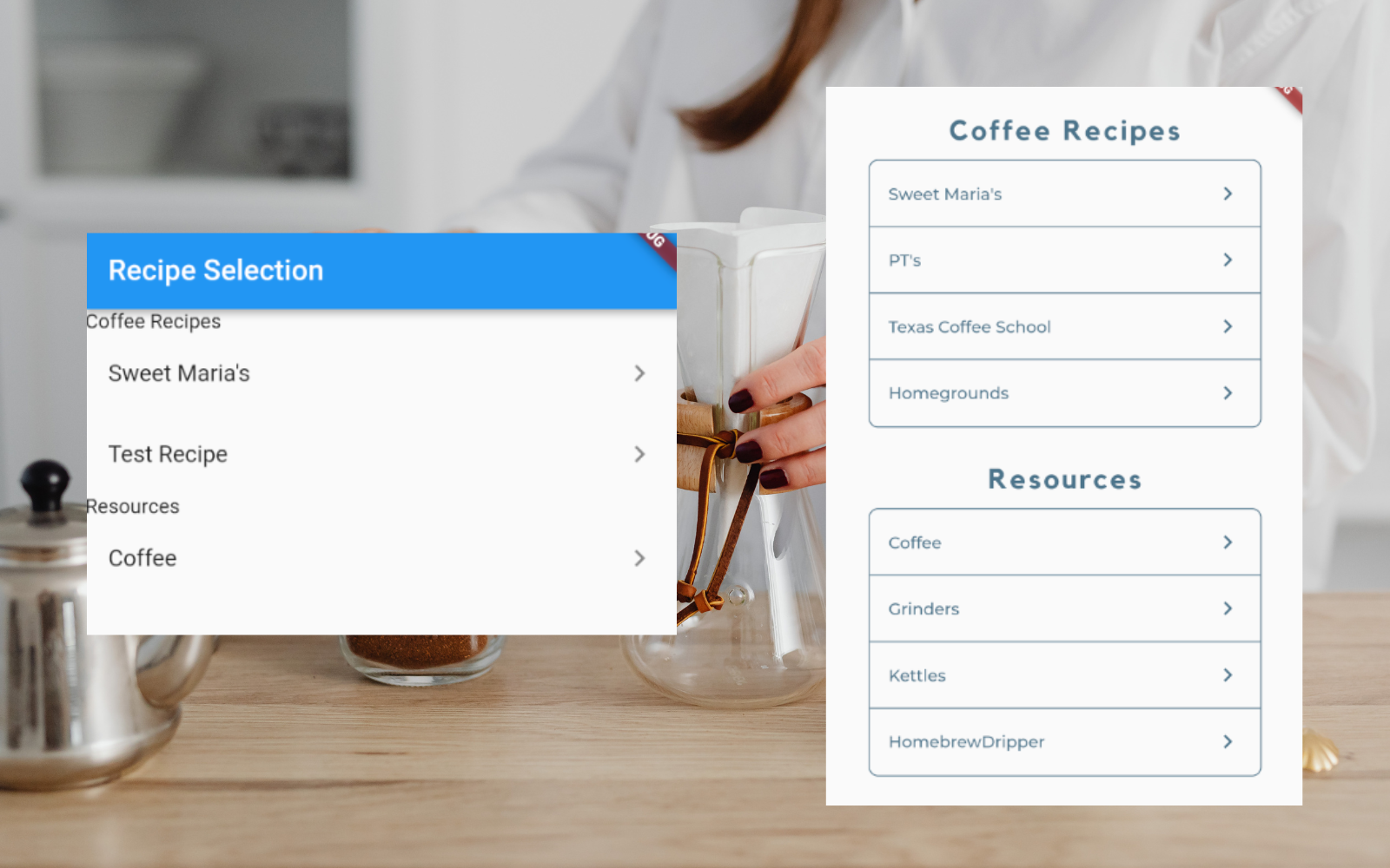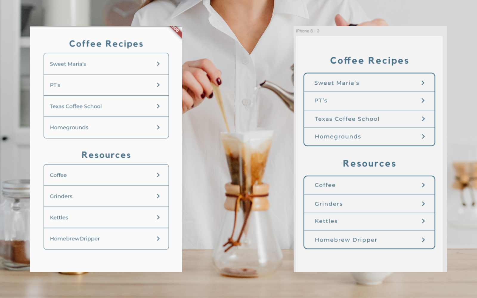 Implemented and refined UI and functionality for a coffee recipe app, aligning screens with Figma designs and ensuring reliable navigation.
