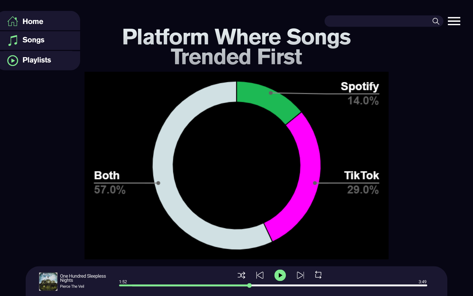 The results showed that while TikTok often accelerates exposure, it does not always lead Spotify trends. Approximately 66% of songs trended on TikTok first, while 33% gained popularity on Spotify earlier, with many trending simultaneously.